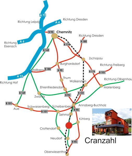 in Sehma dann rechts auf die Karlsbader Straße nach Cranzahl fahren