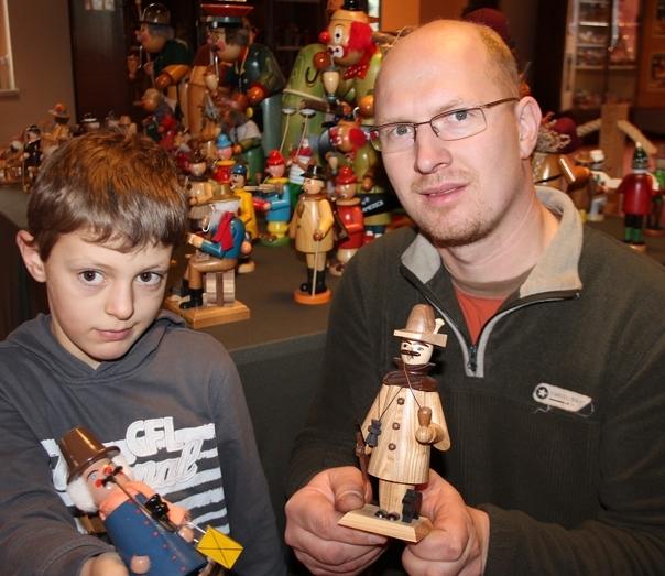 Claudio Lenk und Sohn Toni laden zur Räuchermann-Tauschaktion.